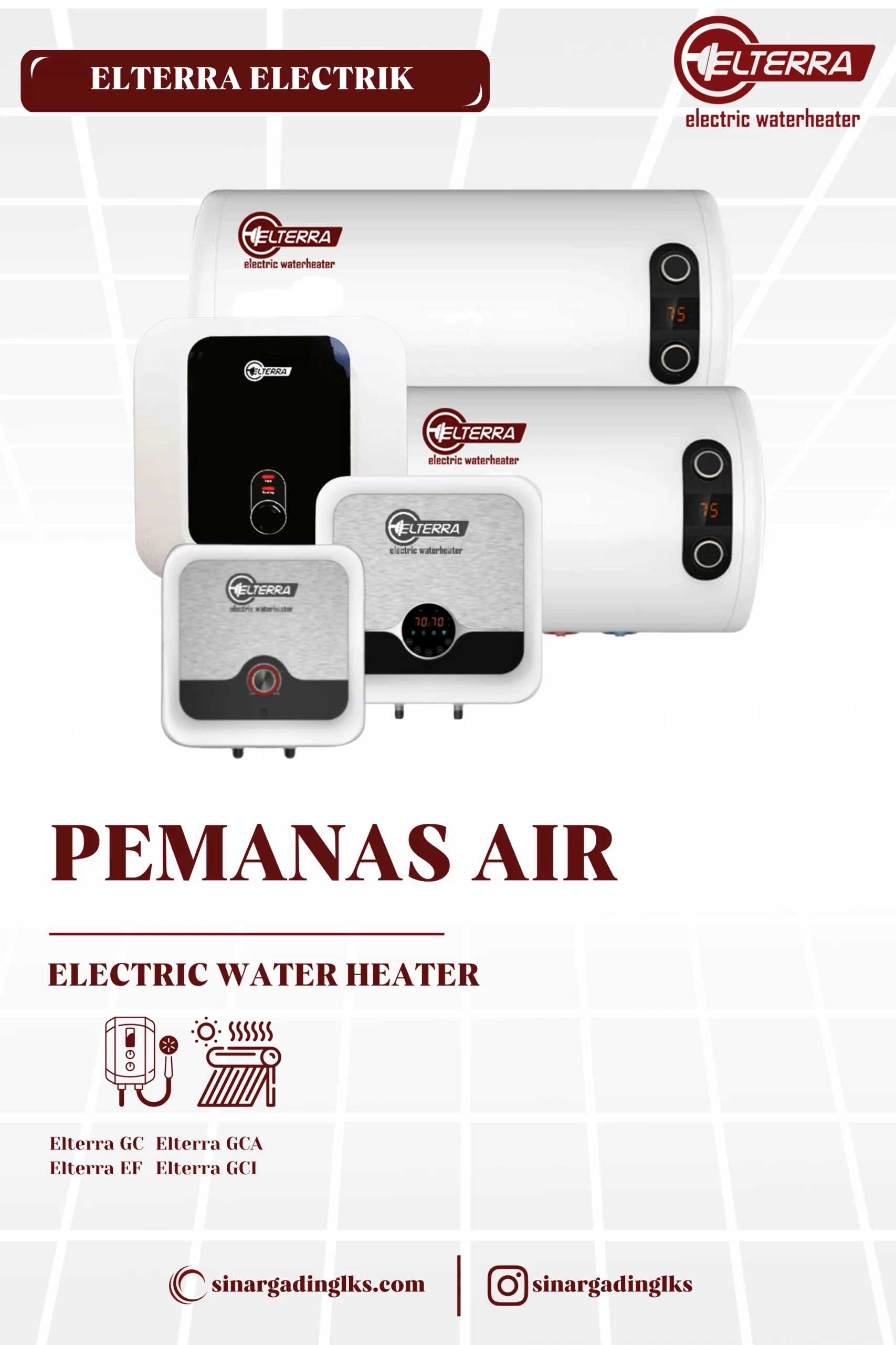 Electric Water Heater adalah salah satu metode dalam memperoleh suasana mandi yang menyenangkan. "Elterra Electric Water Heater" yang dimana Elterra diambil dari kata "Electric" dan "Terra" yang memiliki arti bumi, sesuai dengan artinya bawah produk ini adalah produk yang ramah lingkungan, bermutu, berkualitas dan tentunya aman serta nyaman dalam penggunaan. Produk ini memiliki kelebihan pada saat anda berada di temperatur dingin, anda mampu memakai pemanas air untuk mandi. Pemanas air ini sudah mendapatkan pengembangan teknologi terbaru yang dibuat dari waktu ke waktu untuk membuat pengguna terasa nyaman dalam memperoleh pemanasan untuk mendapatkan kehangatan air di kamar mandi.