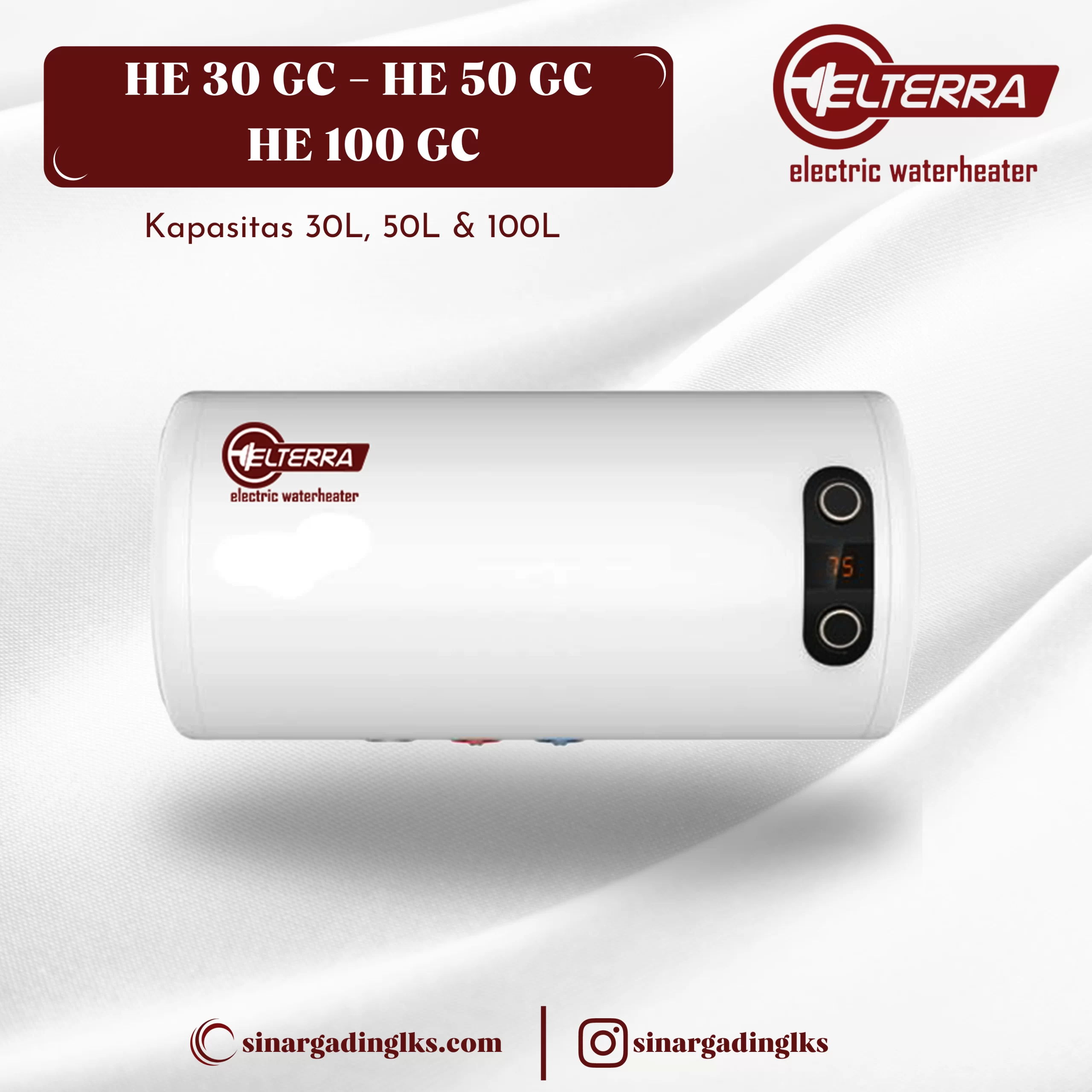 Elterra Electric Water Heater hadir dalam beberapa varian yang dapat disesuaikan dengan kebutuhan yaitu 10 liter, 15 liter, 30 liter, 50 liter, 80 liter dan 100 liter.